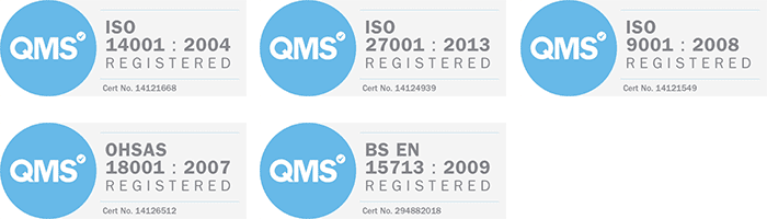 Environmental, Health & Safety, Data Destruction, Information Security & Quality Certifications.