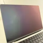 Light keyboard rub marks on the anti-glare coating, only visible when the screen is off. No impact on functionality. Photos may appear harsher than in person.