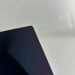 Small chip outside of viewing area on bezel. Small dent on right of speaker grill.